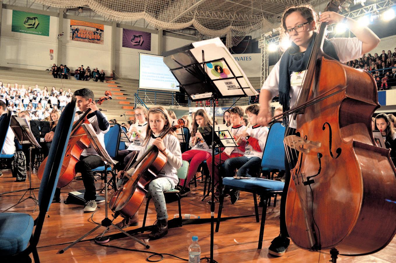 tásticas”. Para ele, a realização dos encontros, que ocorreram simultaneamente pela primeira vez, ajudam a fortalecer a filosofia de investir no ensino musical nas escolas. “É um marco do que nos propomos a fazer com os estudantes em sala de aula. É um indicativo que estamos no caminho certo.”