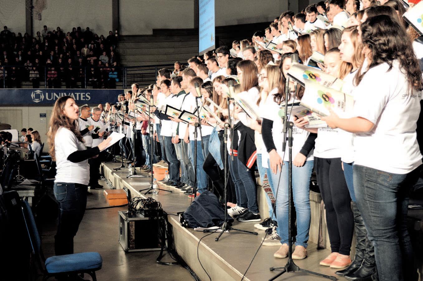 Mais de três mil pessoas se reuniram nesse sábado para prestigiar a junção inédita do Encontro Nacional de Conjuntos Instrumentais (Encore) com o Encontro Nacional de Corais (Encorse). O evento ocorreu no Complexo Esportivo da Univates. As atenções eram voltadas aos mais de 800 coralistas e instrumentistas, que tocavam e entoavam cânticos religiosos. Em comemoração aos 500 anos da Reforma Luterana, que ocorre no ano que vem, o evento foi em forma de culto festivo. As canções eram intercaladas por leitura de passagens bíblicas. O público, composto por diretores, professores, pais e pastores, se emocionou com a apresentação e a adesão da comunidade.