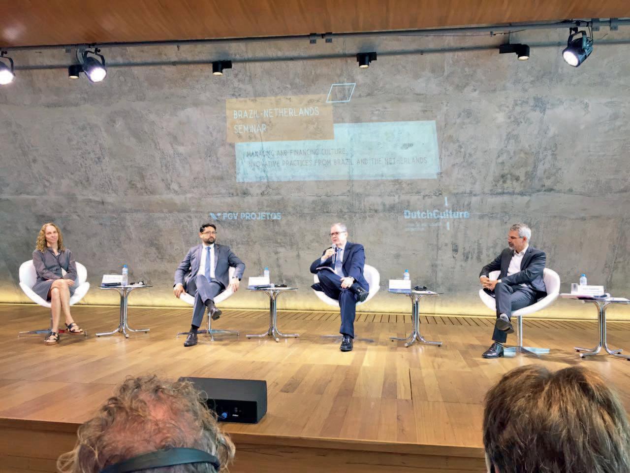 O evento tratou das dificuldades de captação e falta de recursos para a cultura brasileira. A solenidade contou com a presença do secretário Nacional da Cultura, Cláudio Lins de Vasconcelos, representantes de fundos holandeses de financiamento da cultura e bancos privados e públicos brasileiros. A proposta debateu práticas criativas nos dois países, além de discutir modelos de financiamento e captação de recursos para os projetos do setor, que fomentam a economia da cultura.