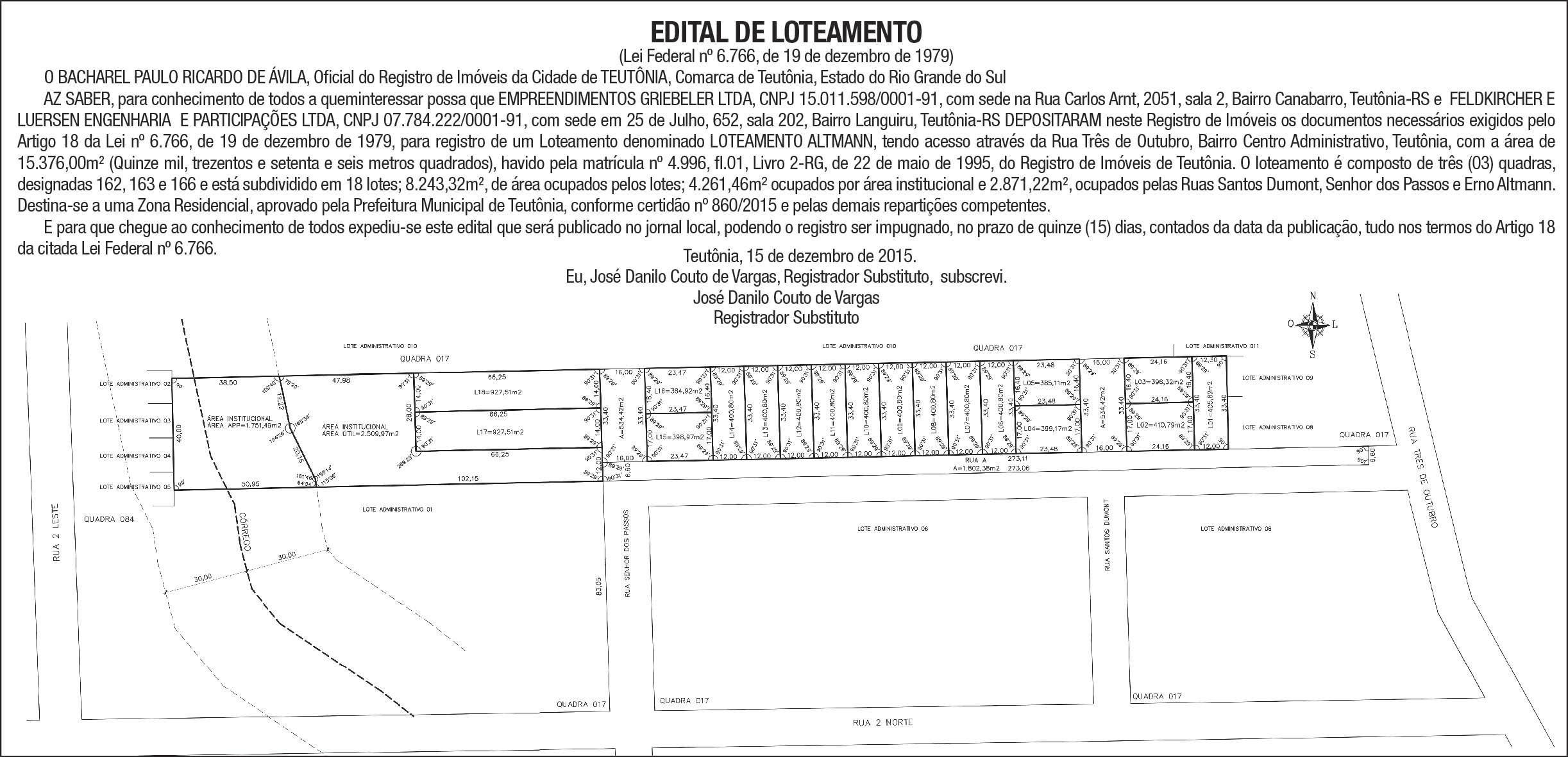 Projeto de Lei nº 017/2015, que denomina Rua 19 DE AGOSTO a atual rua sem nome, identificada por Rua H do Loteamento Kronbauer, localizada no Bairro São Rafael.