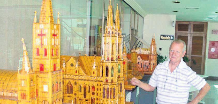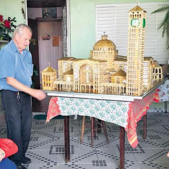 tedral São João Batista, de ta Cruz do Sul. Para ela, foram necessários 50 dias e 75 mil palitos. A última obra finalizada foi a Basílica de Nossa Senhora Aparecida, de Aparecida (SP). O projeto exigiu dois anos de trabalhos e 120 mil palitos.
