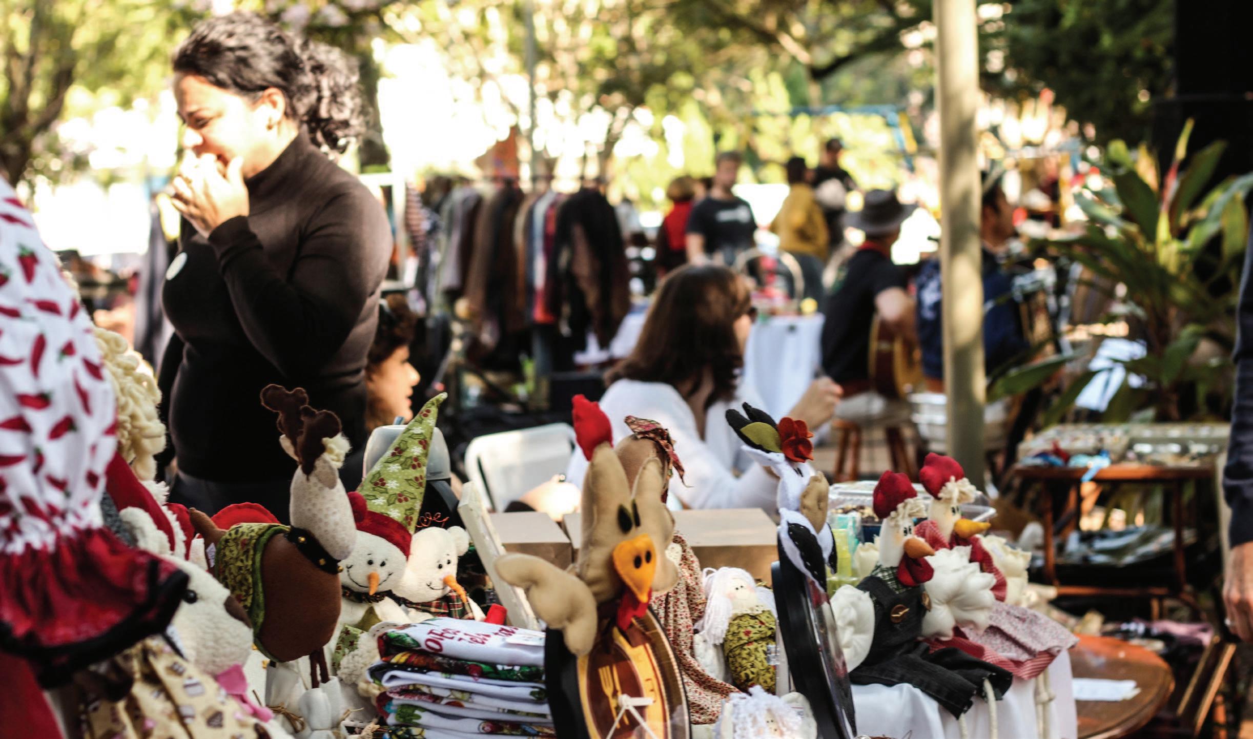 A partir das 10h é possível conferir bancas de tricô, croché, bordado, patch work, bonecos,