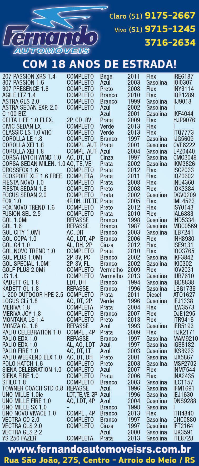 JOSÉ, Rua Ministro Adalto Lúcio Cardoso, Nº 68, São José, Estrela. Tr.: 51 3720-2568/ 9236-9350