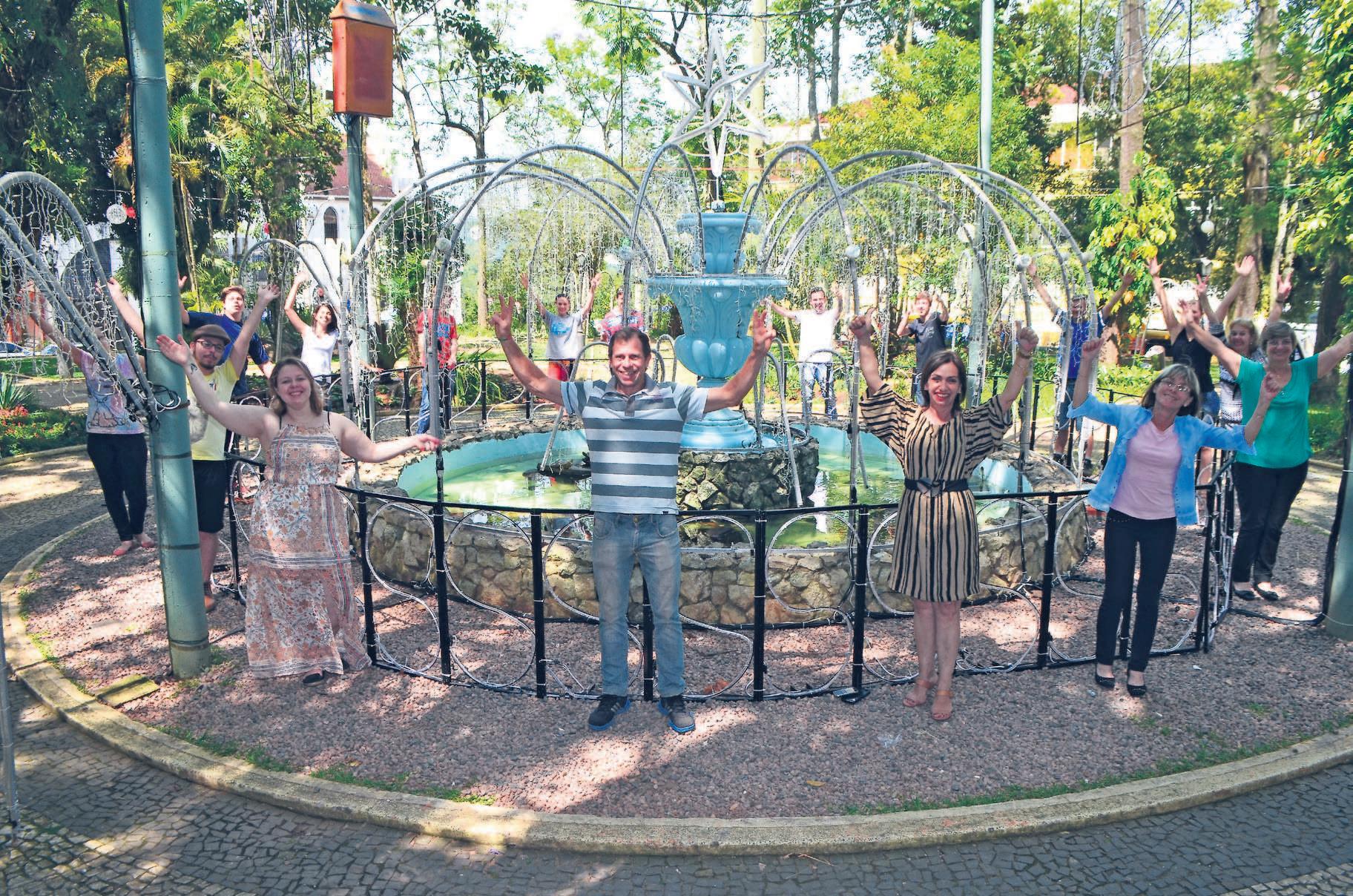 te da primeira-dama, Sueli Bee, 54, entidades como Rotary Club, Lions, Grupo de Artesãos e Liga Feminina de Combate ao Câncer contribuíram com o projeto. Após dois meses de preparo, os funcionários abraçaram o chafariz da Praça Menna Barreto, num ato simbólico de preservação e manutenção dos ornamentos.