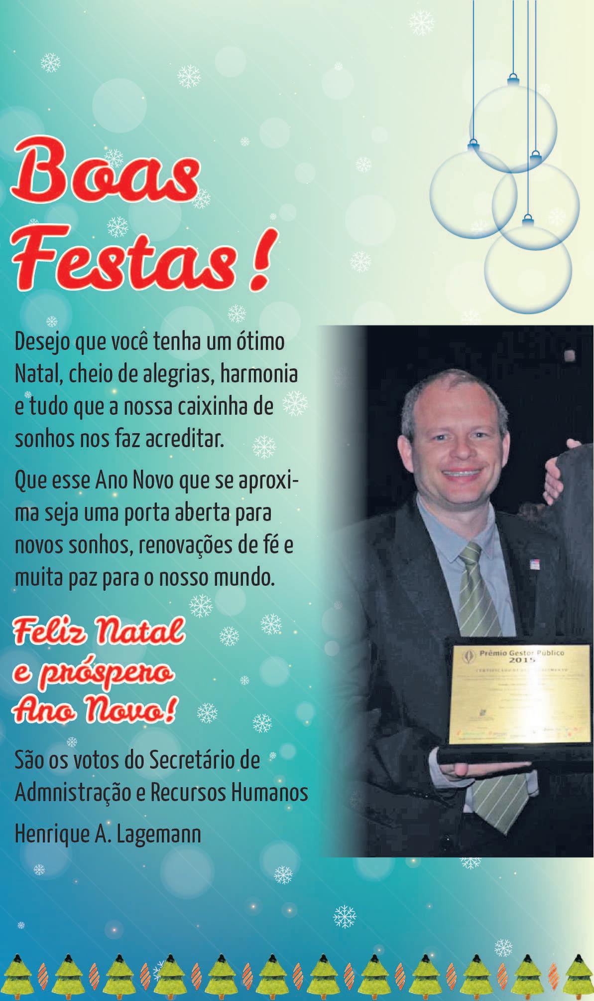 Projeto de Lei nº 11003/2015 em regime de urgência, que dispõe sobre a Política Municipal de Saneamento Básico e o Plano Municipal de Saneamento Básico do Município de Que o espírito de Natal seja uma feliz realidade em todos os lares de nossa cidade e que o raiar de um novo ano seja o anunciador de grandes conquistas e realizações, com muita saúde e esperança!