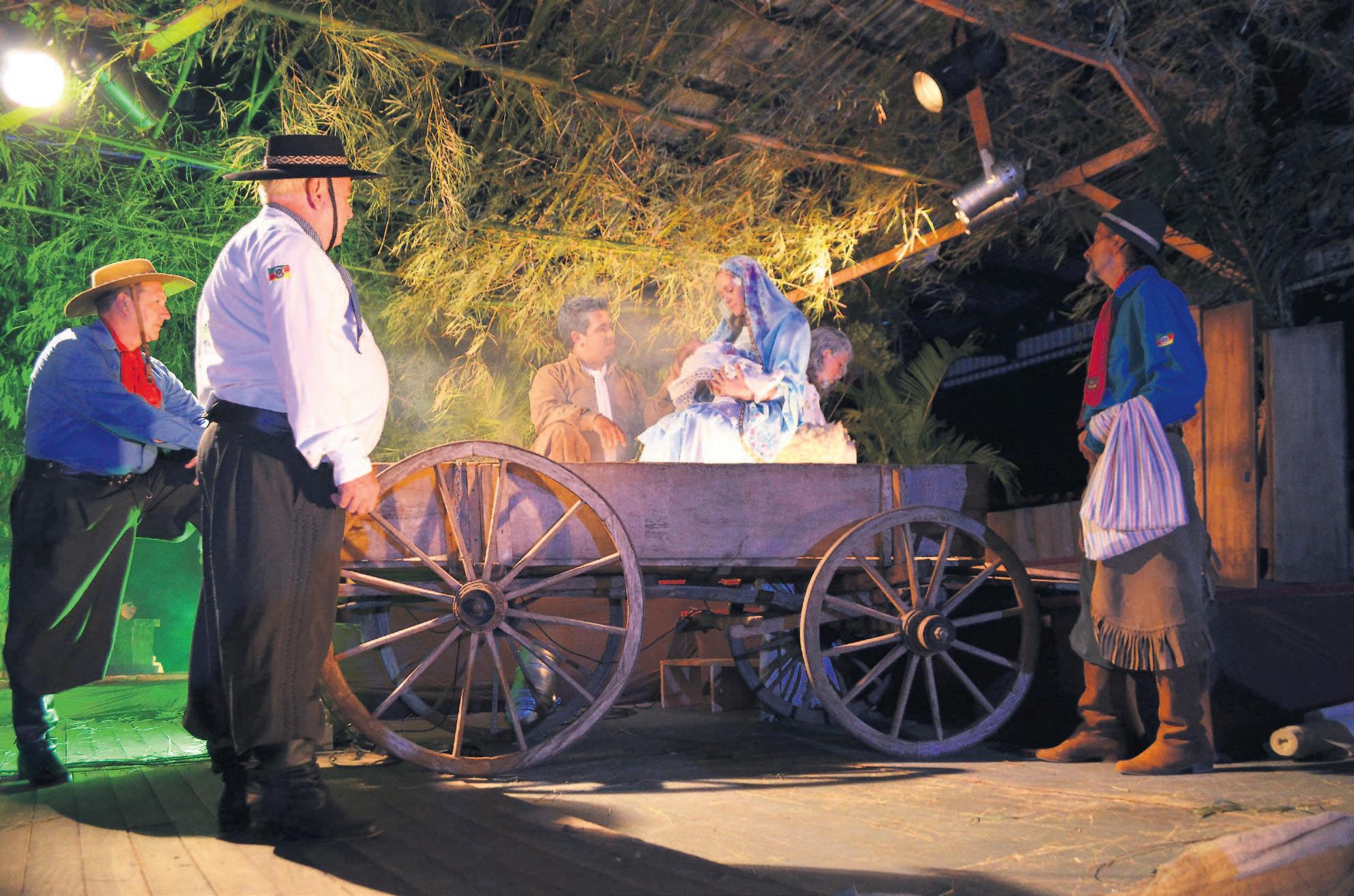 nino, junto a José e Maria. No espetáculo que conta de maneira regional a história do Piazinho Jesus, pela primeira vez, os três CTGs estão unidos em um evento. As festas ao longo do ano são feitas de forma setorizada, em cada bairro. Dessa vez, o espetáculo teatral reuniu os três patrões na encenação. Eles foram os três reis magos.