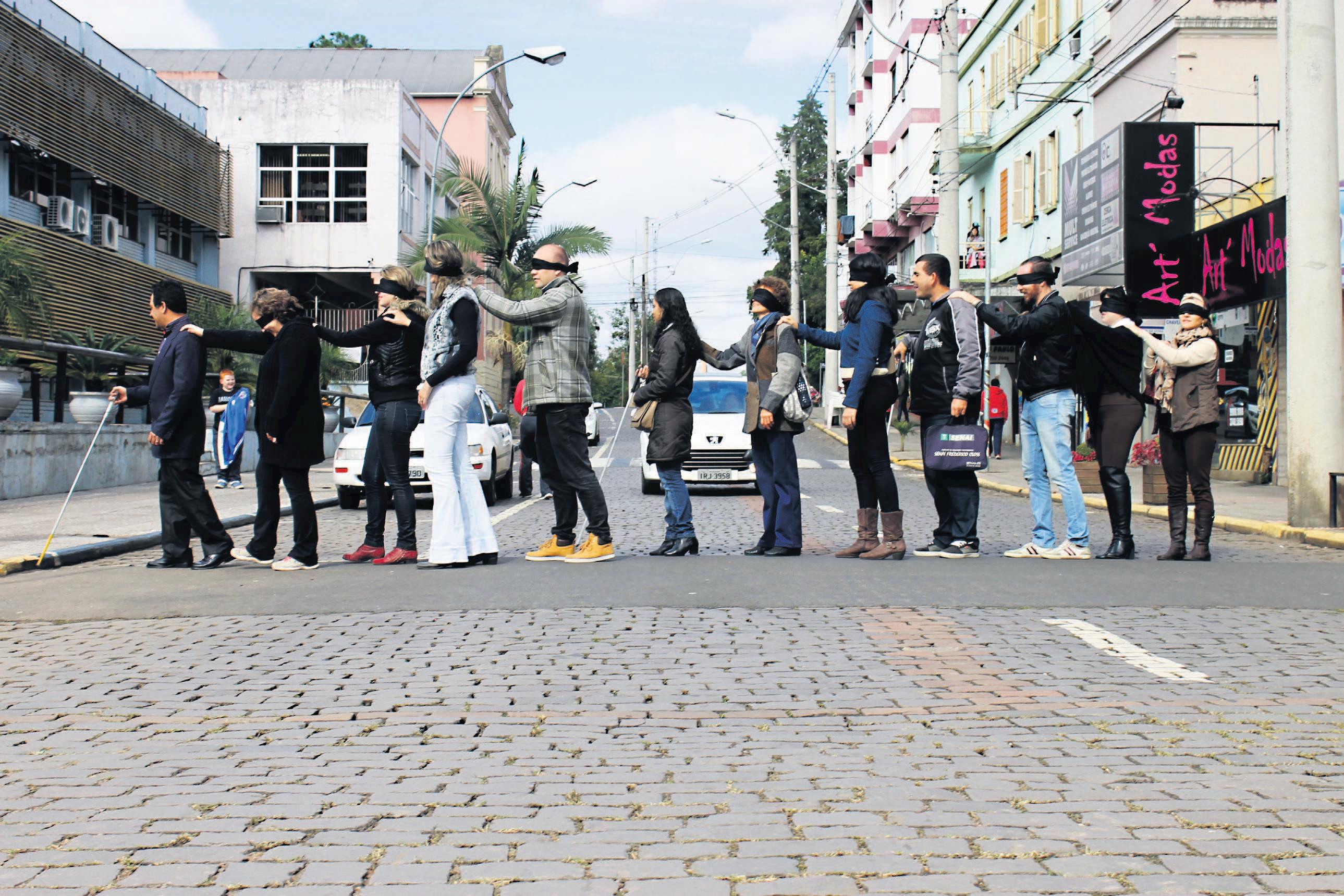 Projeto propõe caminhada com cegos no centro, chamando atenção