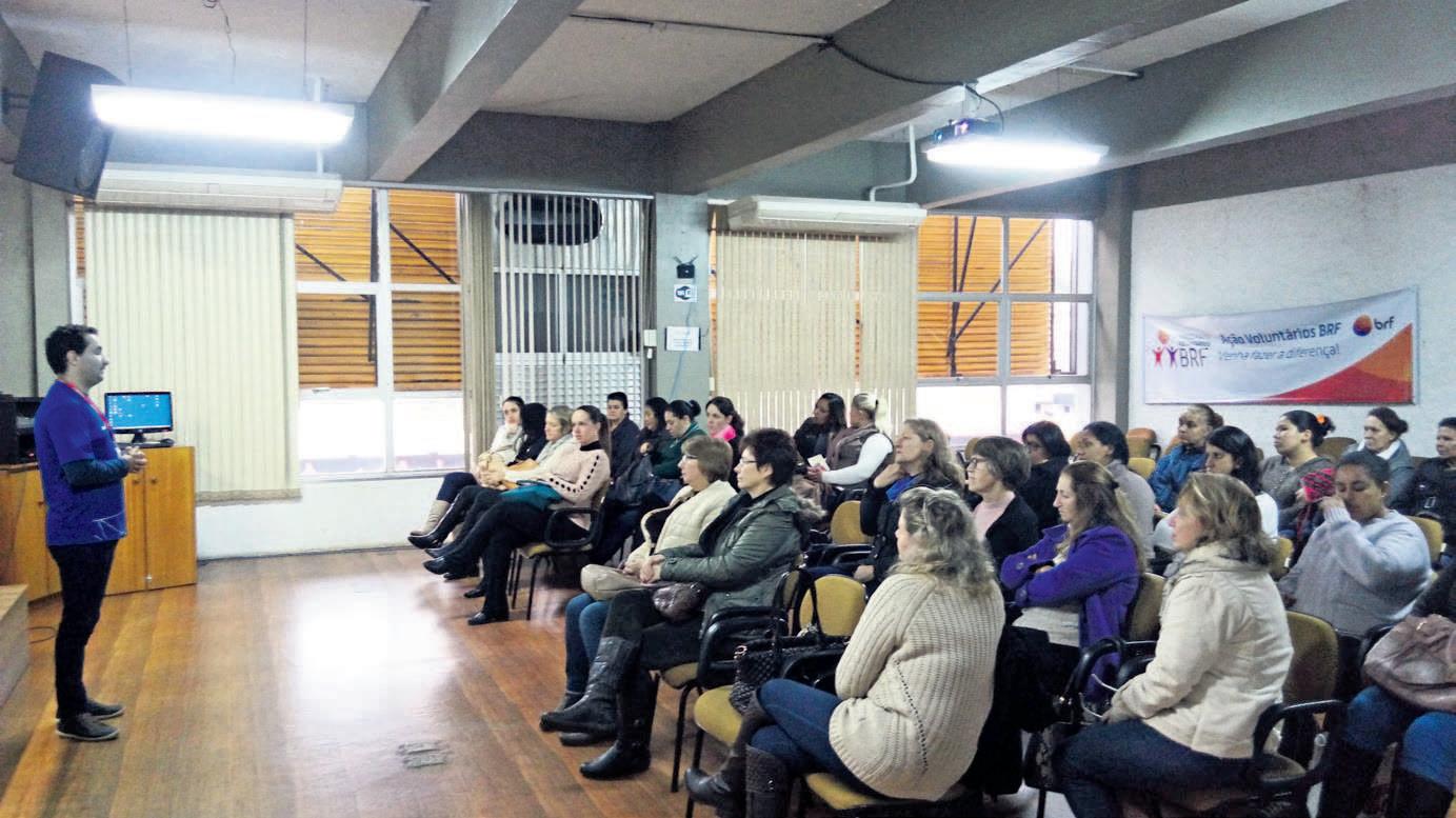 Um descontraído bate -papo alinhado ao conhecimento. Esse foi o cenário da 10ª edição do Projeto Ação Voluntários BRF. O encontro, no salão de eventos da prefeitura, integrou merendeiras e auxiliares de cozinha das escolas públicas do município. Para incentivar esses profissionais, a atividade abordou a arte de cozinhar e do amor naquilo que se faz. O tema foi apresentado pela culinarista Cátia Schnorr. “Somos artistas da cozinha e devemos fazer as refeições com muito amor.”