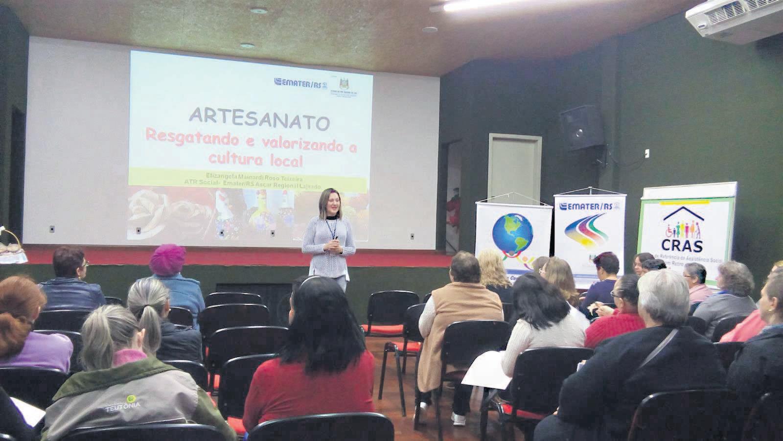 Organizado pela Emater com o apoio da administração municipal, o encontro foi aberto com apresentação artística e cultural das escolas Anita Ferreira Moraes e Brasília. Em seguida, o artesanato foi o tema de palestra da assistente técnica regional da Emater, Elizan-