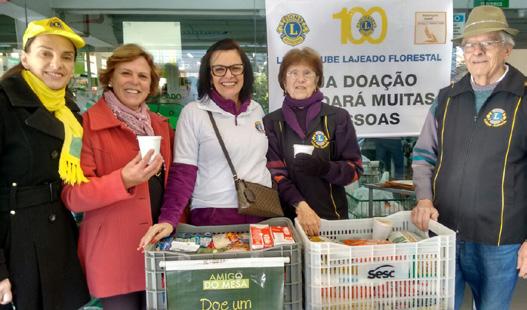 O Lions Clube Florestal recolhe, amanhã, alimentos não perecíveis para a Campanha da Fome – ação de comemoração ao centenário do Lions Internacional. Serão instalados pontos de coleta nos supermercados STR, Rede Vivo e Montanha. Os donativos serão encaminhados a mais de 20 entidades parceiras do Mesa Brasil do Sesc, que apoia a iniciativa. No ano passado, a Campanha da Fome angariou 1,2 tonelada de alimentos em Lajeado.