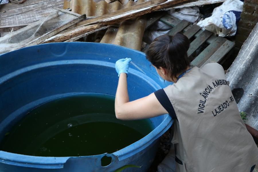 Agentes de combate a endemias, da administração de Lajeado, fazem vistorias em locais que podem acumular água parada