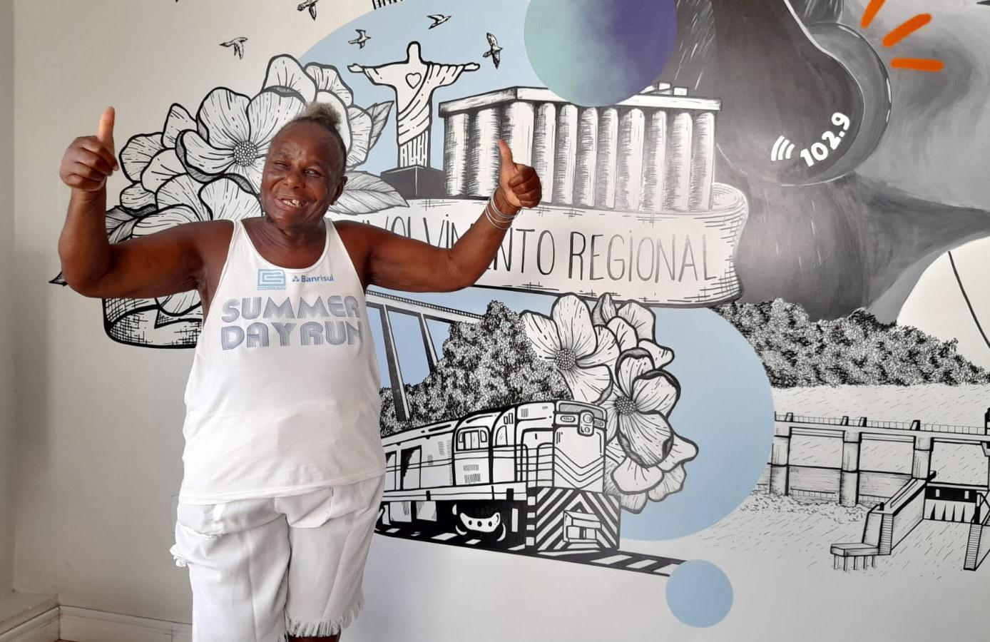 Aos 90 anos, a “Tia Maria” pegou um ônibus em Porto Alegre e veio para Lajeado com o único intuito de realizar a inscrição para as cinco etapas do Circuito dos Vales. 90 anos, mãe de 23 filhos, dona Maria Bispo Rodrigues segue correndo. De chinelo, pois diz que os tênis machucam seus pés.