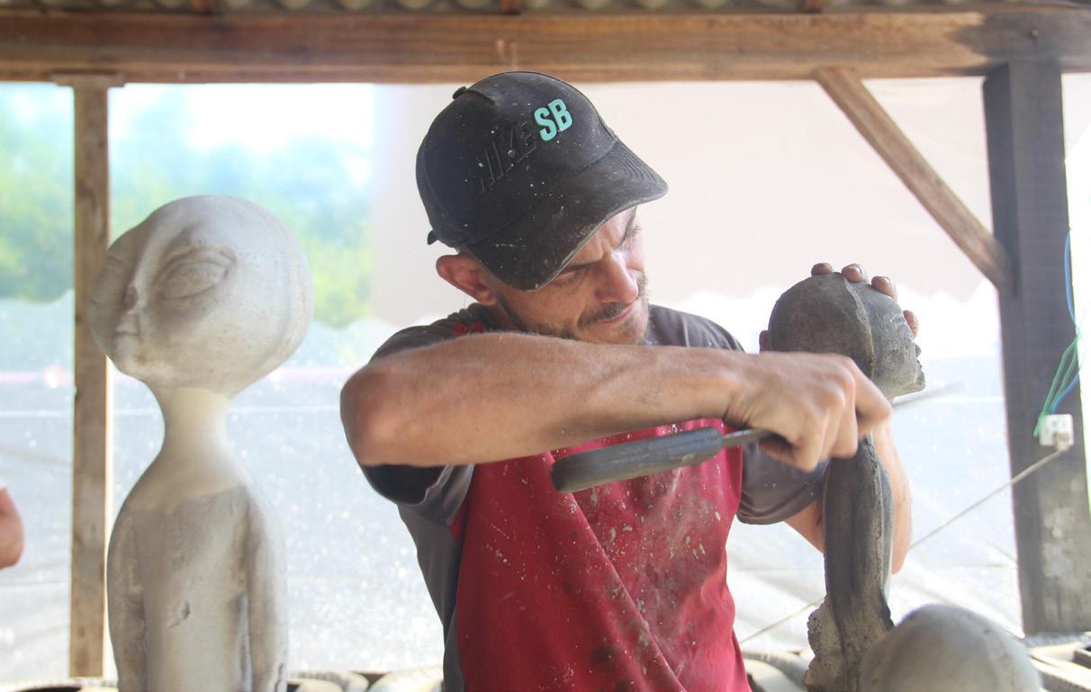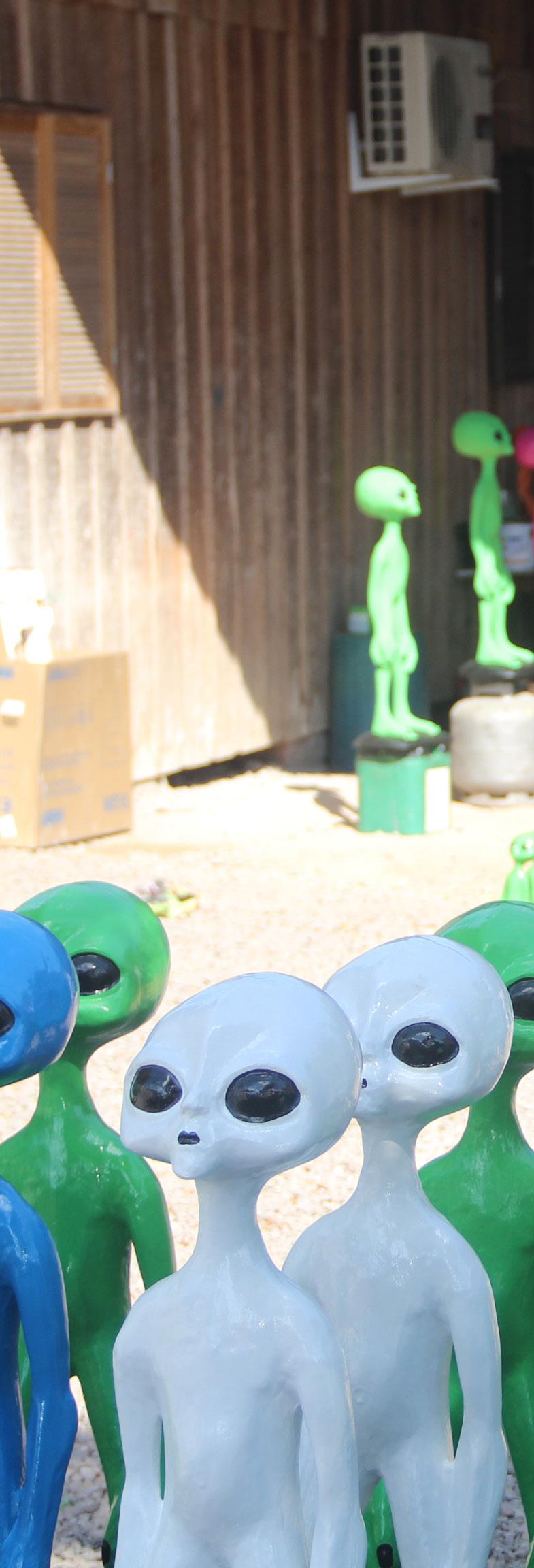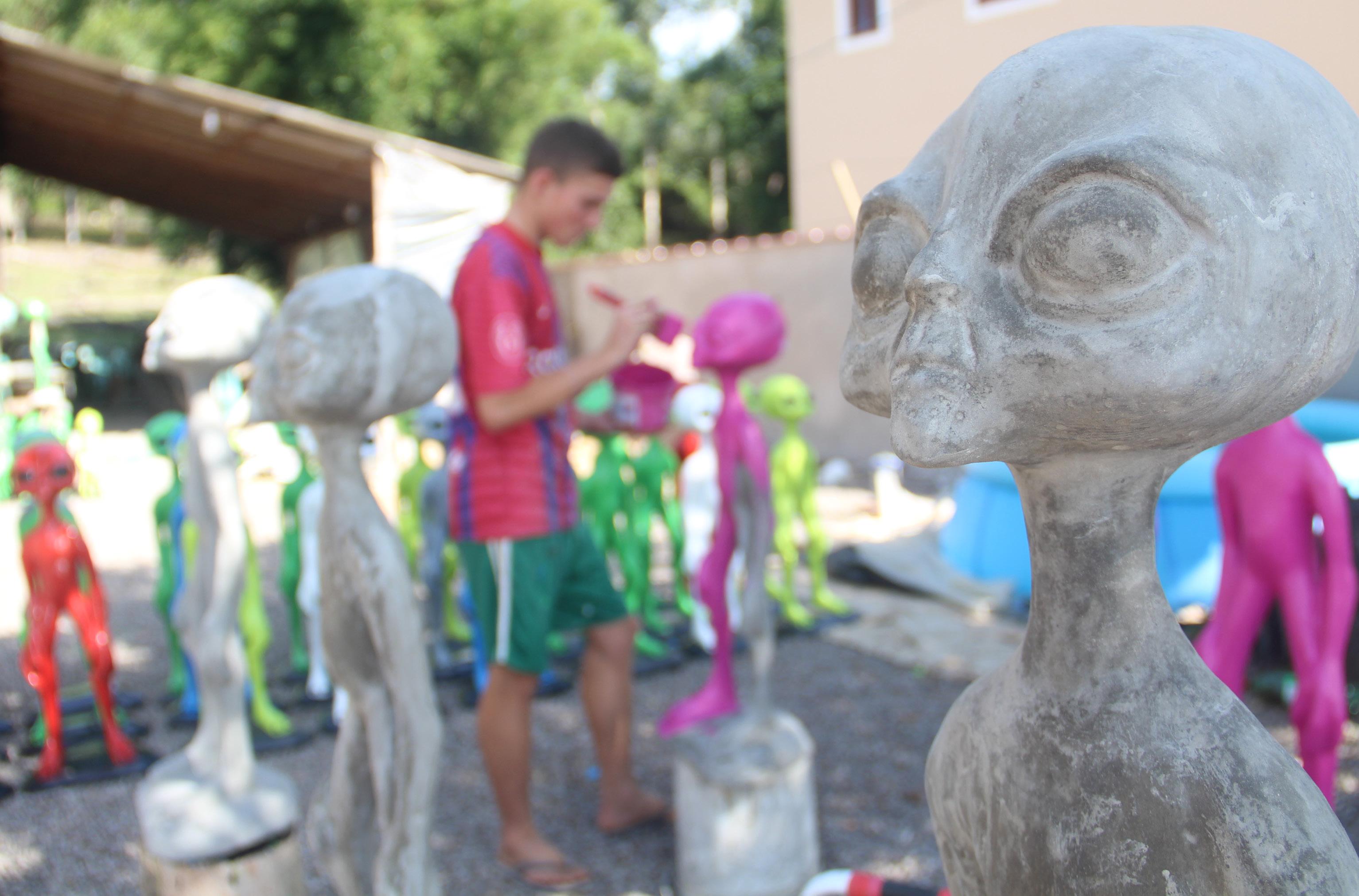 Aliens decorativos despertam curiosidade e são sucesso de vendas. Em Tabaí, às margens da RSC-287, artesãos que fabricam capelas e vasos percebem o movimento aumentar na busca pelas peças inusitadas e ampliam produção. Bonecos usados em jardins se tornaram opção de negócio. Especialistas analisam o que está por trás do fenômeno.