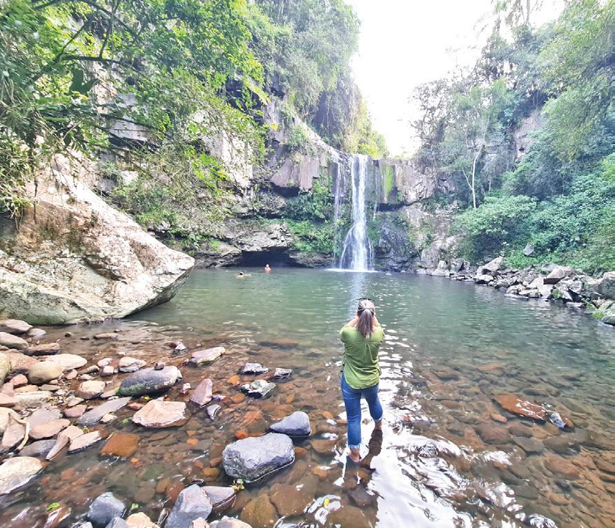 Dalmoro: uma charmosa queda de água de 13 metros com poço cristalino. Tem trilha fácil e infraestrutura de camping, em Vasco Bandeira.