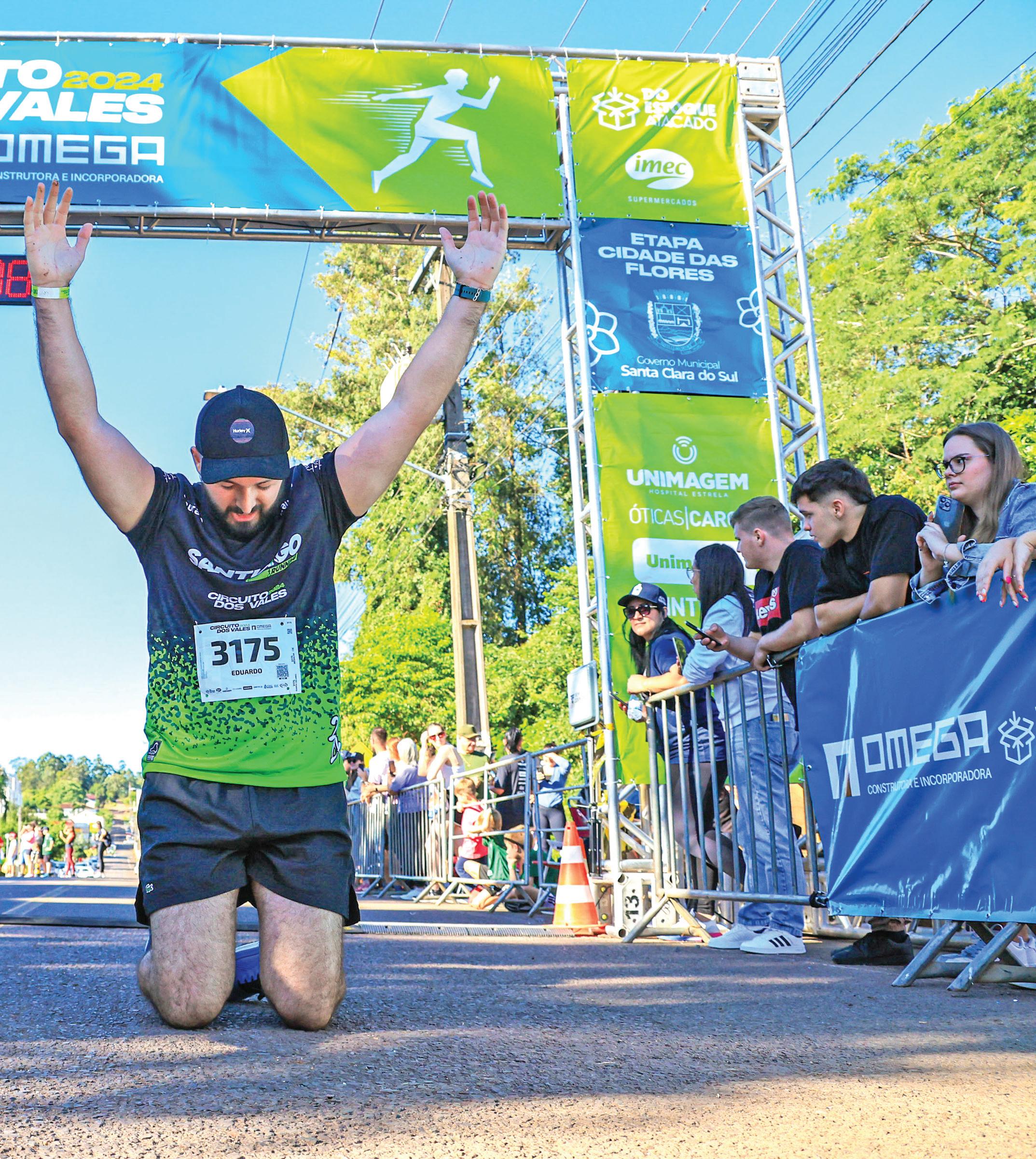 uando eu passei pela linha de chegada, a primeira coisa que eu fiz foi me ajoelhar e dizer ‘obrigado Deus’. Agradeci por estar vivo e ter conquistado esse sonho que eu tinha, de voltar a correr”. As palavras são de Eduardo Schweitzer, 28, de Bom Retiro do Sul. Há sete meses ele passou por uma cirurgia cerebral para a retirada de um tumor. O relato resume a emoção em completar a sua primeira prova de corrida depois do procedimento.