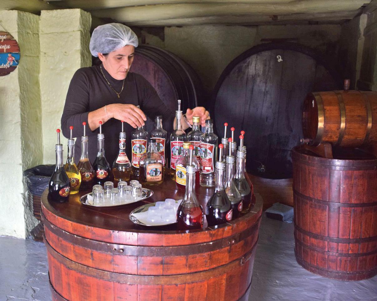 Visitante pode degustar licores e cachaças na adega da propriedade