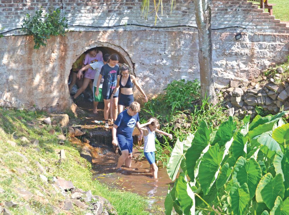 Durante as atividades de gincana, os participantes são divididos em times. Com as equipes dentro da piscina, o instrutor passa as coordenadas para execução das tarefas. Os passeios pelo interior também proporcionam atividades aquáticas e trilhas entre arroios, ovelhas, bois e vacas.