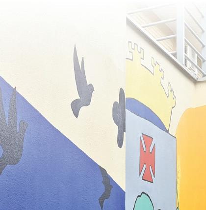 De um lado, o charmoso lago da Praça Clara Maria Schorr. Local escolhido pelos moradores do Olarias para a prática de atividades físicas ou simples descanso. Do outro, a Escola Municipal Nova Viena, onde o cinza foi substituído pelas cores na pintura artística nos muros. Realização