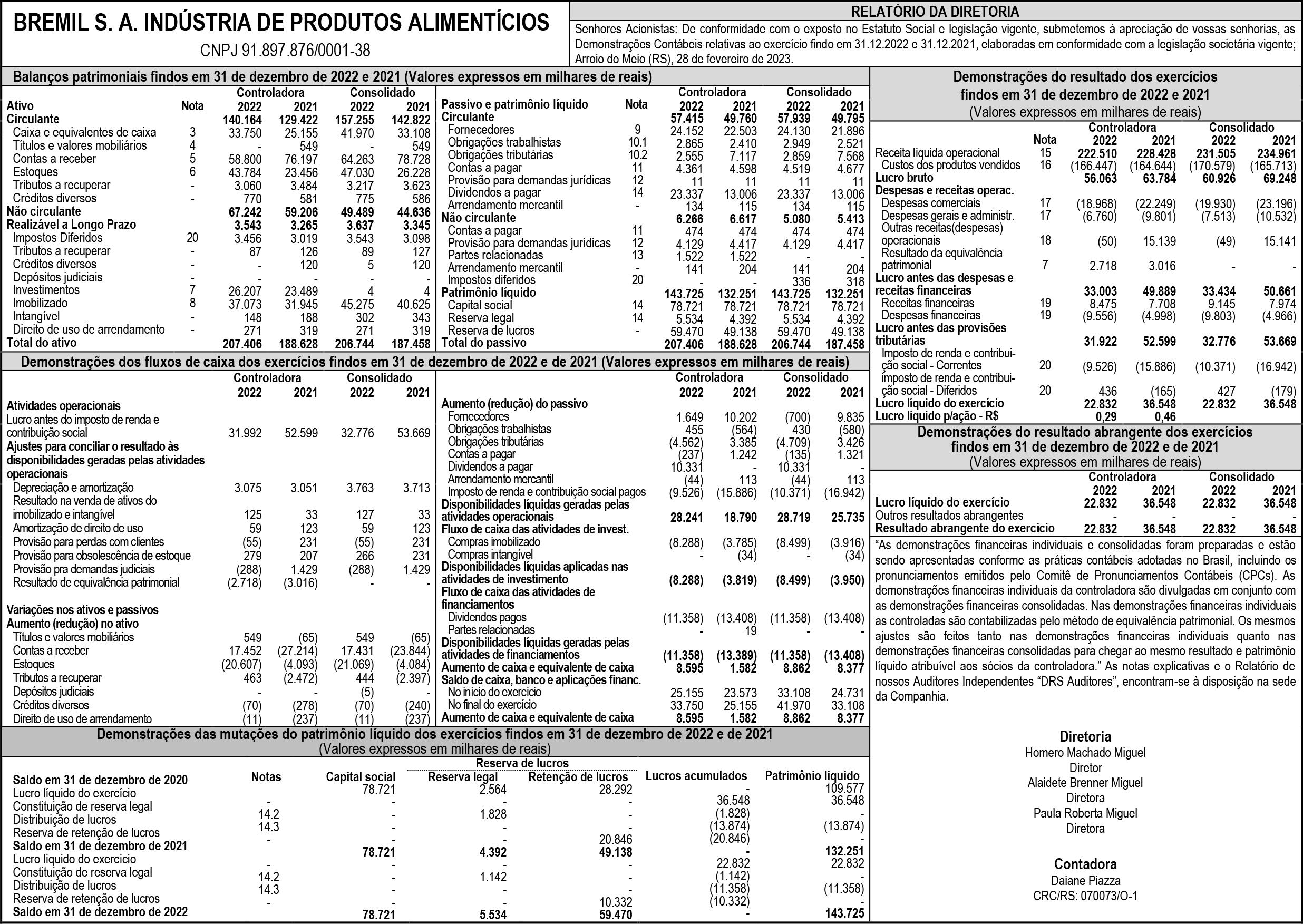 • Conselho de administração efetivo - Thelmo Franke; Elimar Kalkmann; Davi Gass; Fábio Weber.