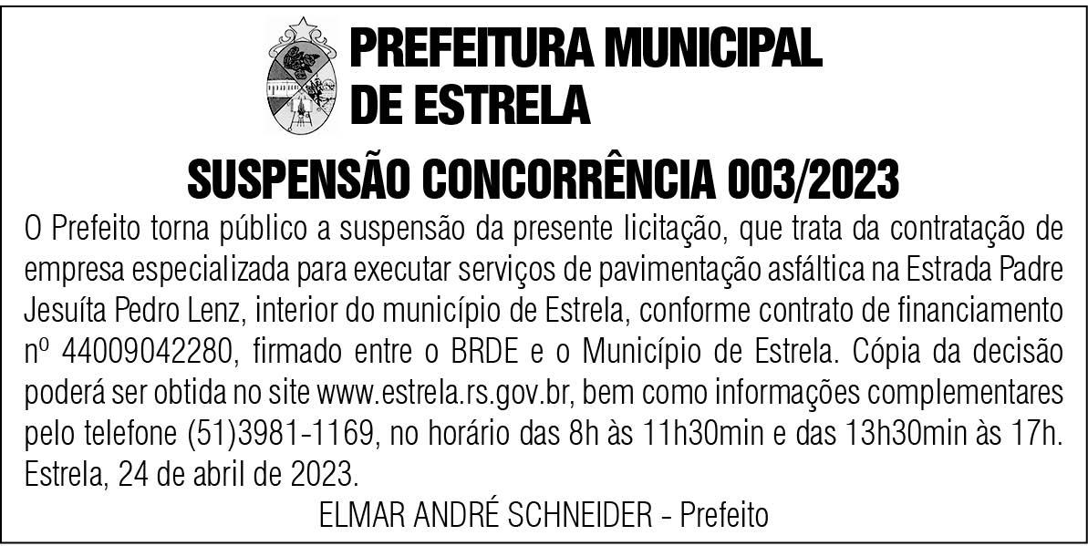 Outras informações sobre o certame poderão ser obtidas pelo telefone (51) 3766-1255, na Secretaria Municipal de Administração e Planejamento.
