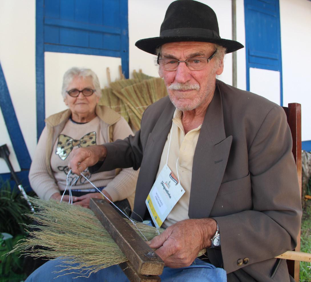com apoio da minha esposa Zilda. Na média, faço três por dia. No auge da produção, cheguei a fazer até 1,5 mil vassouras por ano. Agora, faço na base de 800, 900 a cada ano.