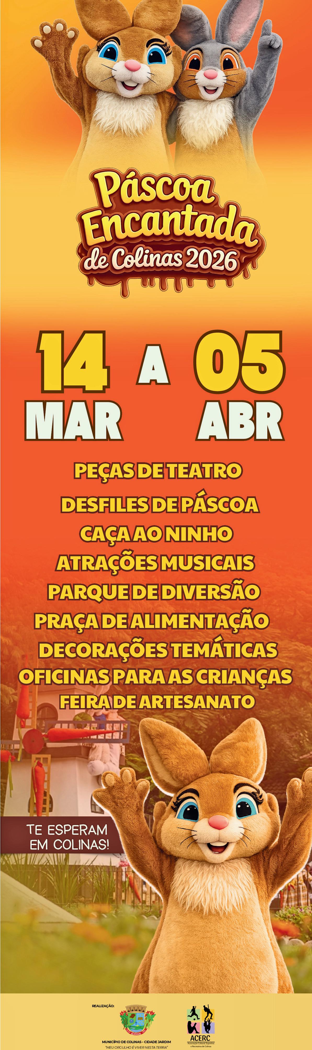 Dias 3 a 5 de abril: 8h: Páscoa Encantada de Colinas.
