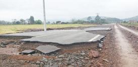 A ponte situada na rua Getúlio Vargas foi danificada e trechos de pavimentação foram arrancados pela força da água. A administração encaminhou o quinto decreto de situação de emergência somente em 2023 – o quarto em função de enxurradas.