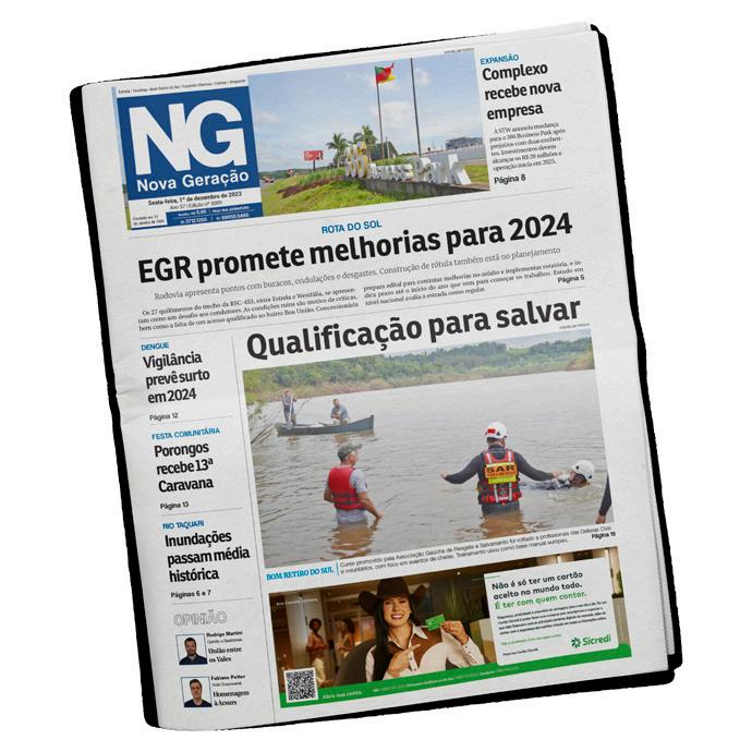 A última edição do Jornal NG neste ano retoma em capas, reportagens e fotografias os 23 assuntos com maior impacto nos seis municípios de circulação do semanário. Conquistas da microrregião, desastres climáticos, casos curiosos e polêmicos, e desafios no campo econômico marcaram 2023 e caracterizam um ano que fica para a história.