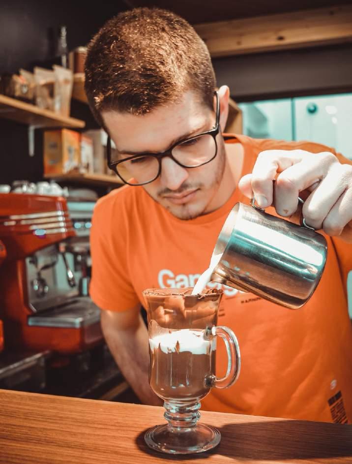 Tudo isso acompanhado de cafés especiais e muito sabor. “Grande parte dos nossos produtos é artesanal, com os melhores ingredientes. Quem experimenta, sempre volta”, orgulha-se Pedro, que é o chef do empreendimento e um autodidata no que faz. “Aprendi fazendo. Gosto de criar, inventar. Todas as receitas de tortas são minhas. Com 3 anos já tirava foto com panela na cabeça”, recorda.