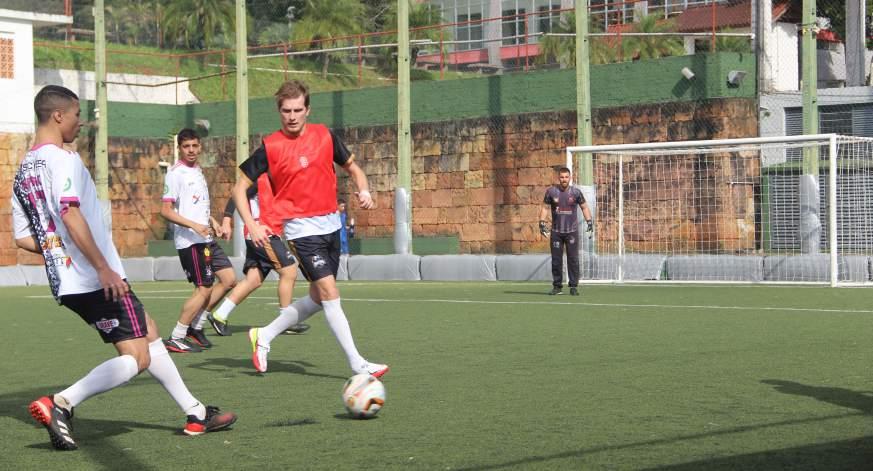 Os irmãos maristas sempre incentivaram a prática de esportes. Na foto a equipe de futebol de salão de 1961: Carmo Horn, Roque, Irmão Marista, Barth e Chito.