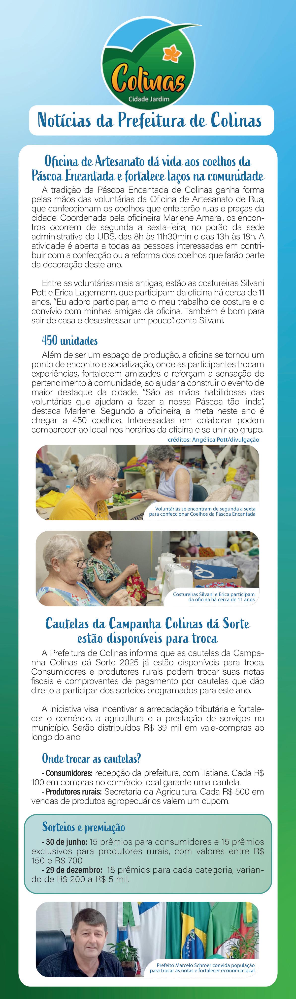 - A Cacis Estrela confirma em a 1ª reunião-almoço de 2025. A palestra será com a prefeita Carine Schwingel, no dia 14 de março, a partir das 11h45min, na Societá Italiana Fiori Dei Piani. O tema abordado será “Desenvolvimento Socioeconômico: parcerias para crescer. Inscrições abertas pelo telefone (51) 3712-1900 e WhatsApp 986330-0021.