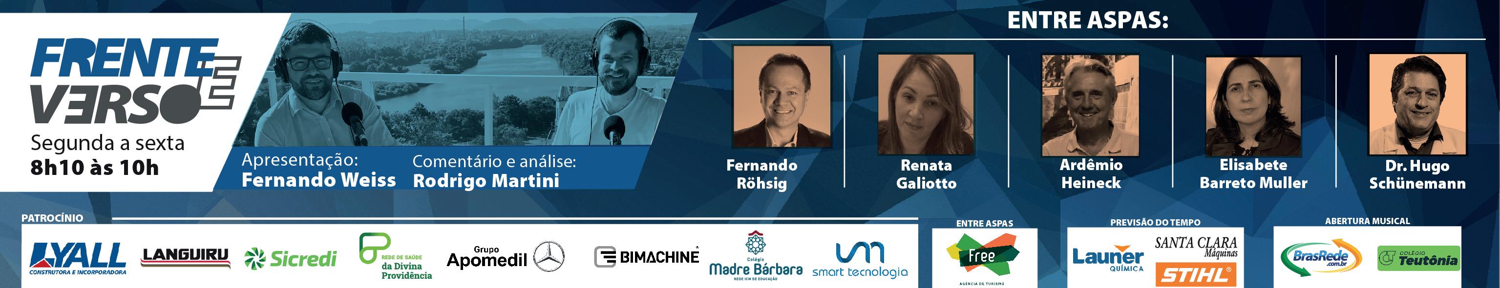 Segunda-feira, 3 outubro 2022 Os artigos e colunas publicados não traduzem necessariamente a opinião do jornal e são de inteira responsabilidade de seus autores. Impressão Zero Hora Gráfica Filiado à Fundado em 1º de julho de 2002 | Vale do Taquari - Lajeado - RS Diretor Executivo: Adair Weiss Diretor de Mercado e Estratégia: Fernando Weiss Diretor de Conteúdo Editorial: Rodrigo Martini Contatos eletrônicos: Av. Benjamin Constant, 1034, Centro, Lajeado/RS grupoahora.net.br / CEP 95900-104 assinaturas@grupoahora.net.br comercial@grupoahora.net.br faturamento@grupoahora.net.br financeiro@grupoahora.net.br centraldejornalismo@grupoahora.net.br atendimento@grupoahora.net.br Editor-chefe da Central de Jornalismo: Alexandre Miorim FAÇA SUA ASSINATURA 51 3710-4200