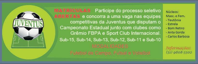 O Esporte Clube Nova Berlim, de Canudos do Vale, programa para amanhã a tradicional Festa Esportiva. A competição ocorre na praça de esportes do clube. Os torneios de bochas em dupla e 48 iniciam às 10h. Às 14h, ocorre o torneio de futebol 7 masculino e feminino. Após o encerramento dos jogos, ocorre reunião-dançante com entrega da premiação. O ingresso é grátis. Mais informações com os organizadores, Pimbe (8464-0631), Batatinha (84862992), Laudir (8484-4723), Carlão (8526-8266), ou Banana (8514-7576).