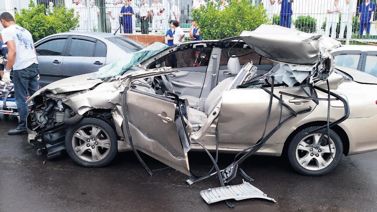Com a colisão, o teto do veículo foi arrancado e a condutora precisou ser resgatada com ajuda de uma tesoura hidráulica. O sargento do Corpo de Bombeiros, David Bussmann, auxiliou no