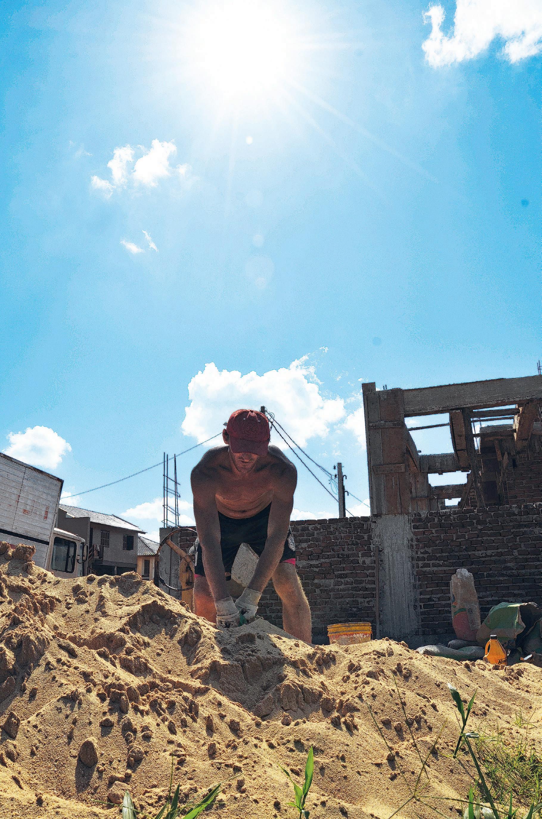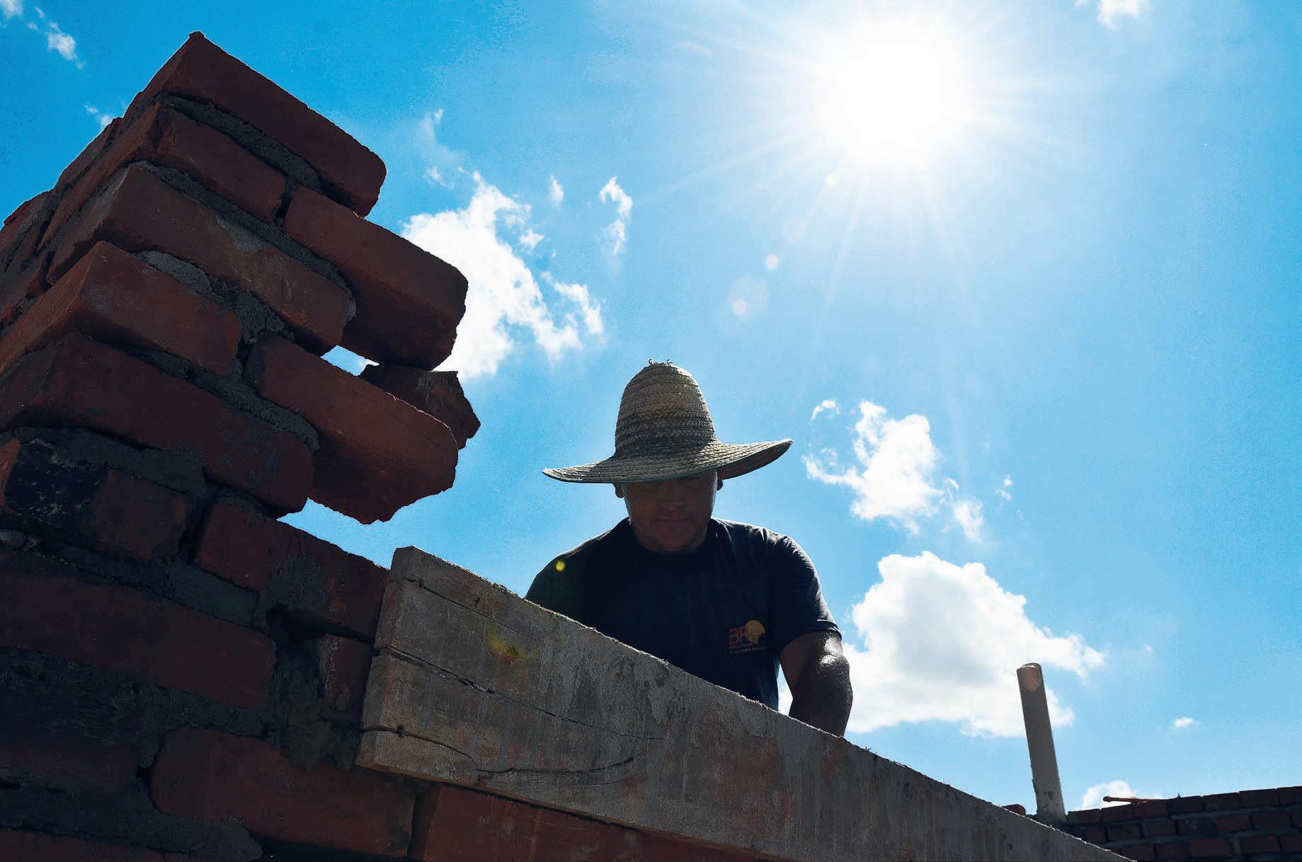 Em uma pequena obra particular no bairro Jardim do Cedro, nas proximidades da divisa com o Santo Antônio, pedreiros trabalham sem camiseta sob o escaldante sol das 16h. Uma cena comum em empreendimentos menores, onde grandes chapéus de palha surgem como principal – e por vezes único – protetor.