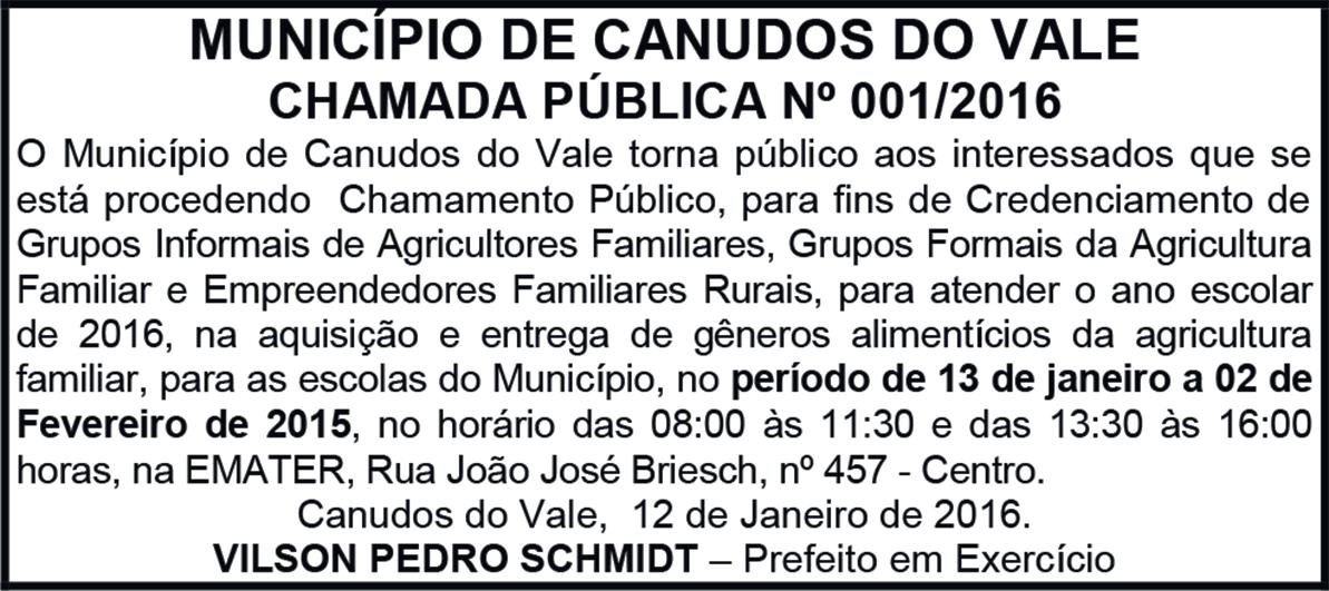 Os agricultores dos municípios devem apresentar o talão de produtor até 29 de fevereiro para ser feito o levantamento anual de ICMS. A intenção é apurar as movimentações realizadas em 2015. Solicita-se aos produtores levar o talão com as respectivas contranotas ao setor de ICMS no centro administrativo.Nãohaverároteiro pelas localidades do interior.