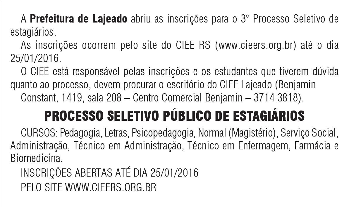 Lajeado, Quinta-feira, 14 de janeiro de 2016