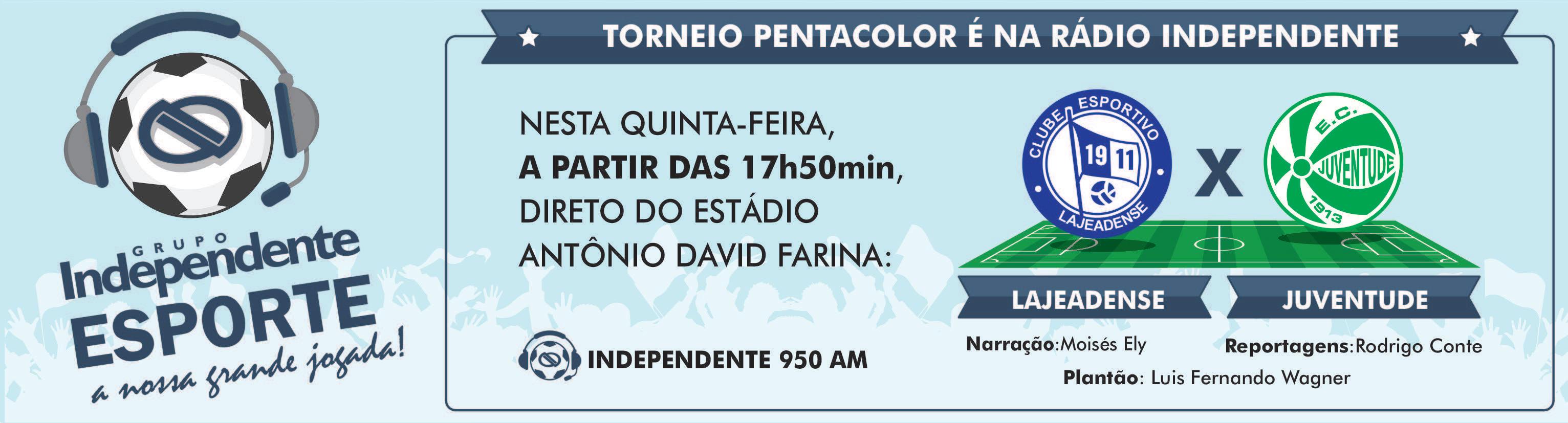 OLajeadense participa do Quadrangular Pentacolor enquanto se prepara para o Campeonato Gaúcho 2016. A competição amistosa ocorre em Veranópolis e reúne a equipe da casa, o Alviazul, Brasil de Pelotas e Juventude. Hoje, às 18h, a equipe comandada por Rodrigo Carpegiani encara o Juventude em confronto válido pela semifinal. Na outra disputa, o Veranópolis joga contra o Brasil de Pelotas, às 22h. Todos os jogos ocorrem no Estádio Antônio David Farina.