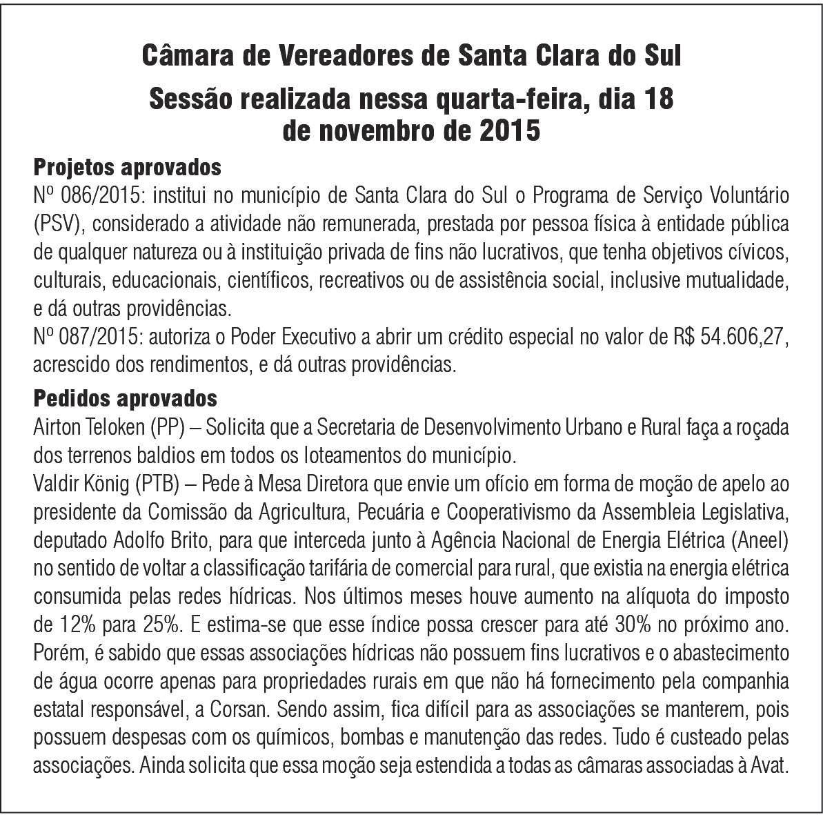 Em sessão ontem no Centro Cultural da Univates, os vereadores aprovaram o reajuste de 9% no imposto para 2016. Página 4