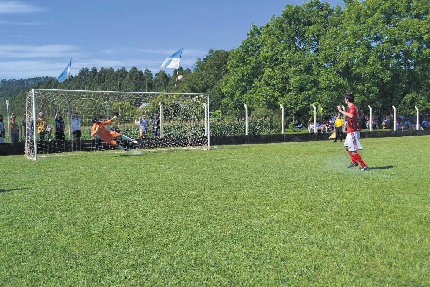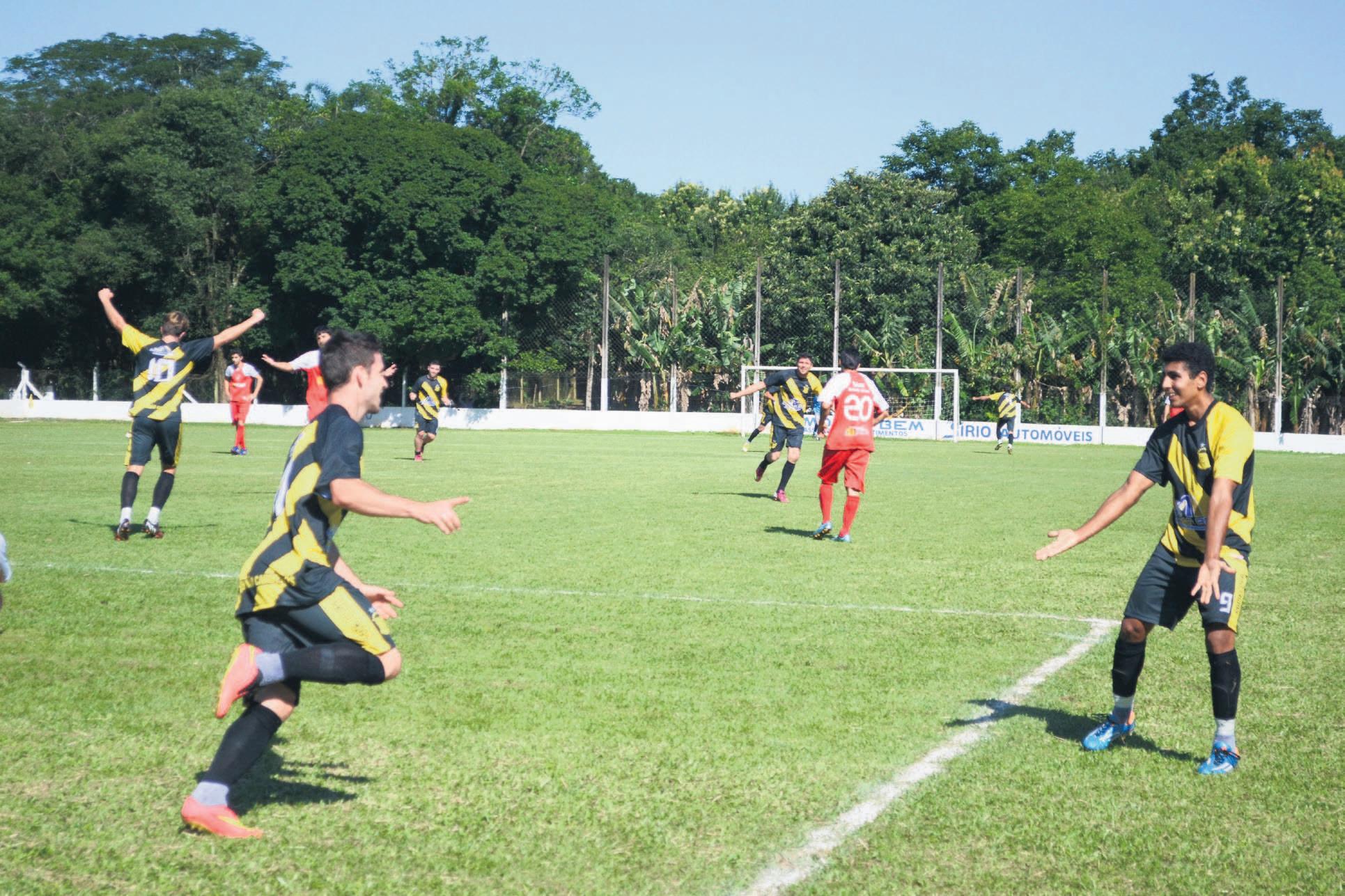 O meia-atacante Jean Both (e) abriu o placar para o União Carneiros na vitória por 3 a 0 sobre o Juventude de Brochier