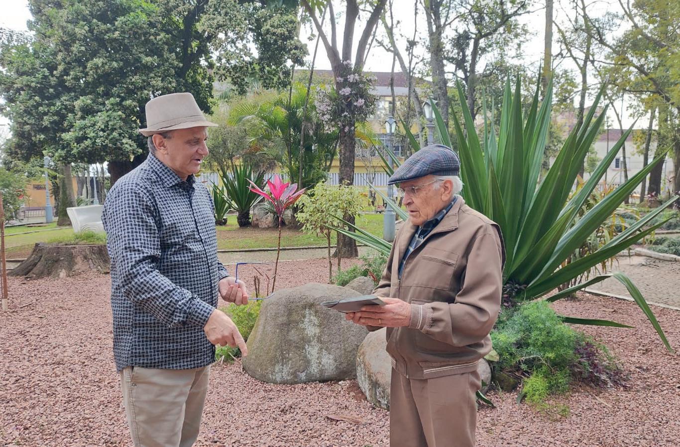 APraça Menna Barreto, no Centro de Estrela, foi castigada pela chuva e vento forte ocorrido nos últimos anos. Em janeiro deste ano, perdeu parte de sua vegetação. Em um processo de reestruturação que envolve todo o município, após os eventos climáticos, a praça também recebe cuidados e melhorias. Uma das ações foi o plantio uma muda de Umbu, árvore que, segundo os relatos e registros históricos, fazia parte do cenário local quando o espaço ainda não era uma praça, nem Estrela uma cidade. O ponto de encontro era fonte de lendas e relatos como da onça que rondava o lugar e alvoraçava a imaginação dos antigos moradores. Uma escultura do animal será adorno o local. O professor e historiador de Estrela, Leônidas Erthal (81) conta que no século XIX, no alto da colina, onde hoje se situa o Centro de Estrela, o “tempo corria de forma diferente. Não havia ainda o desenho familiar de ruas, nem o burburinho de um povoado em formação. A paisagem era vastidão, e a vida seguia os ritmos de uma grande fazenda, com a casa-grande olhando altiva sobre lavouras e senzalas”, diz ele. “Estrela, antes de ser município, era apenas mais uma dentre as tantas fazendas do Alto Taquari, um lugar de resistência à urbanização que tardaria a chegar”, segue.