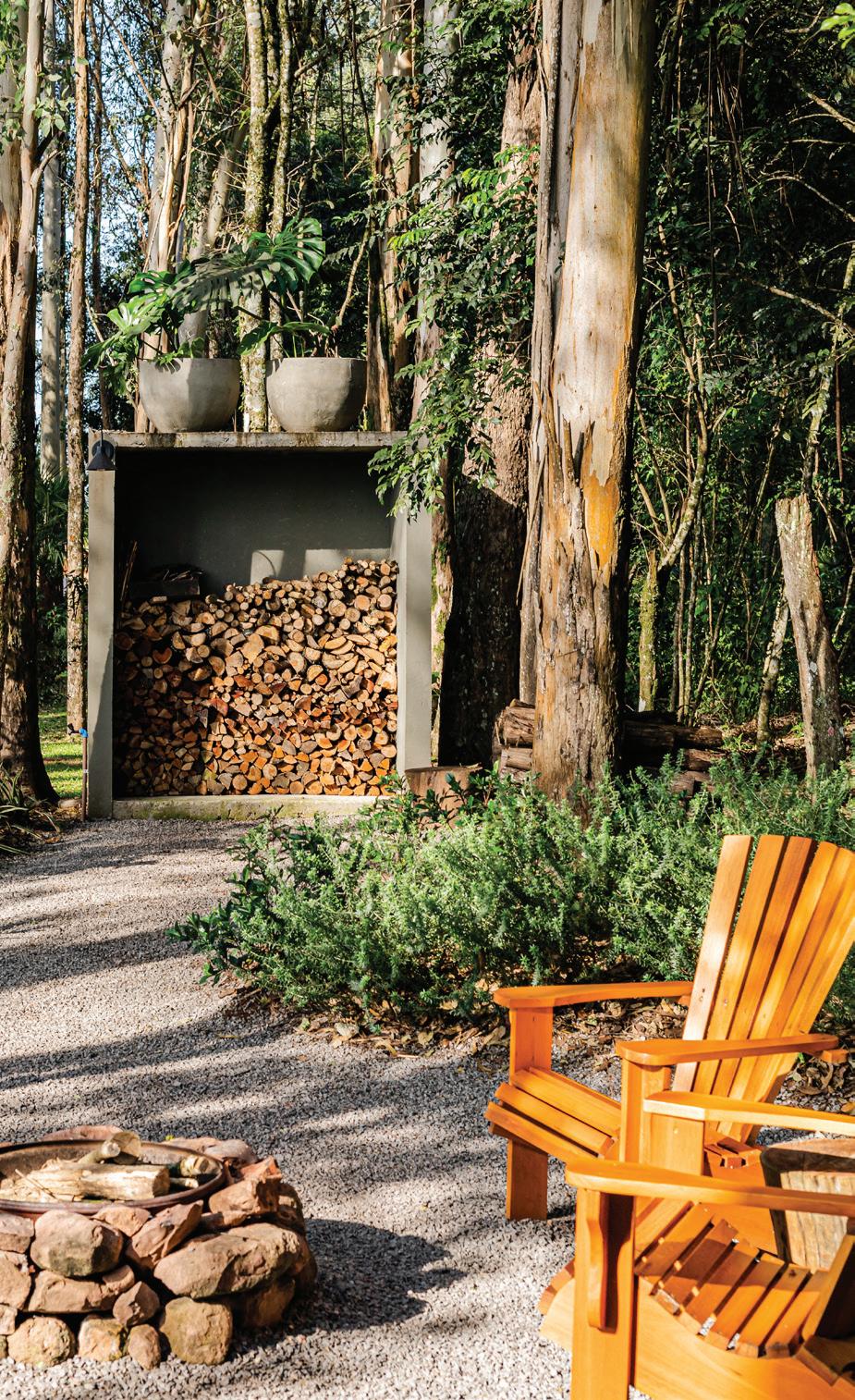 Além disso, o espaço da lenha além de garantir o aquecimento da cabana, possui equipamentos de jardinagem para proporcionar aos hóspedes a experiência de colher suas frutas e chás. A execução do projeto durou cinco meses.