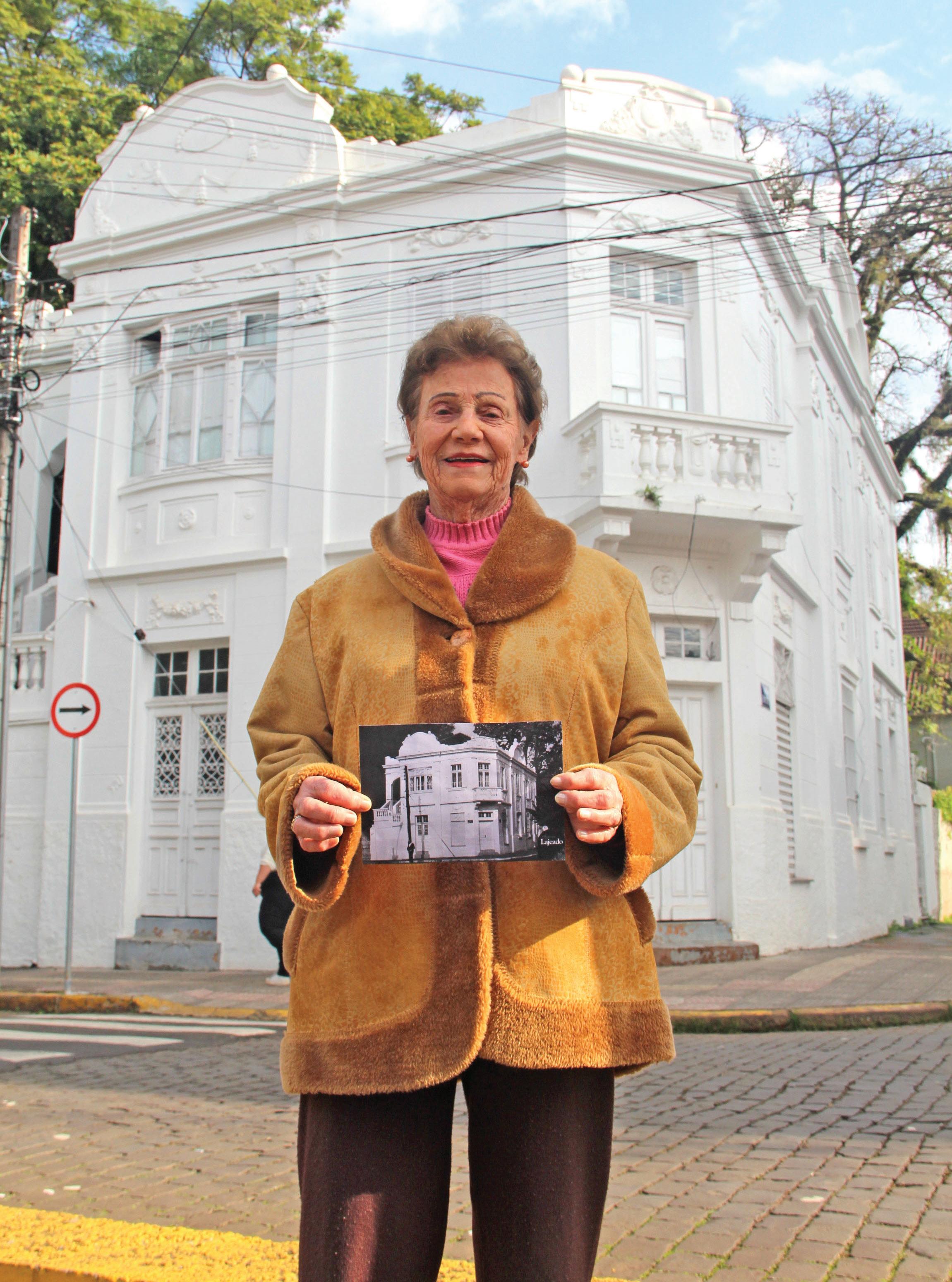 Scheid, 91. Moradora de Lajeado, ela lembra da entrada da antiga residência onde aprendia piano com a mais velha das irmãs.