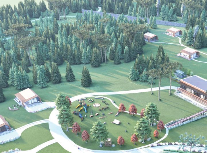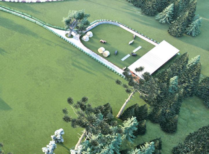 “Para os hóspedes terem uma experiência incrível, foi projetado um estábulo para visitação e alimentação dos animais, um playground para as crianças se divertirem, uma horta e pomar para que possam colher seus próprios alimentos e uma área de piquenique para desfrutar da paisagem”, acrescenta a arquiteta.