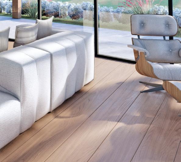 Entre as texturas, destaque para o equilíbrio entre os bri ses de madeira e o concreto aparente. Na parte interna, também foram adotados car petes para ajudar no conforto acústico, além de painéis em MDF para compor cada área, conforme a finalidade.