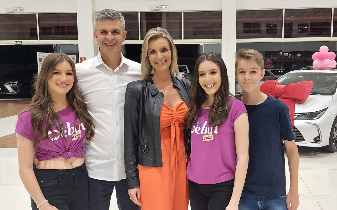 Um coquetel na Motolândia Toyota marcou uma das atividades do Debut do CTC 2022. Depois de uma viagem a Gramado, entre outros encontros, na quinta-feira foi o momento para as meninas e seus familiares curtirem os últi mos preparativos antes do grande baile. As 16 debutantes também participaram de um desfile de carros na data e, depois do co quetel, tiveram o último ensaio antes do tão esperado dia. O baile ocorre neste sábado, 8, no Salão Social do Clube Tiro e Caça.