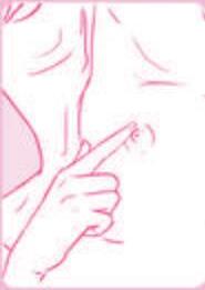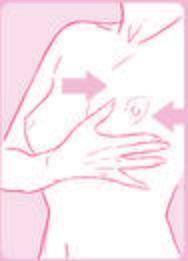 Deitada, com o braço dobrado sobre a nuca, examine o mamilo, se houver retração, informe seu médico; 40