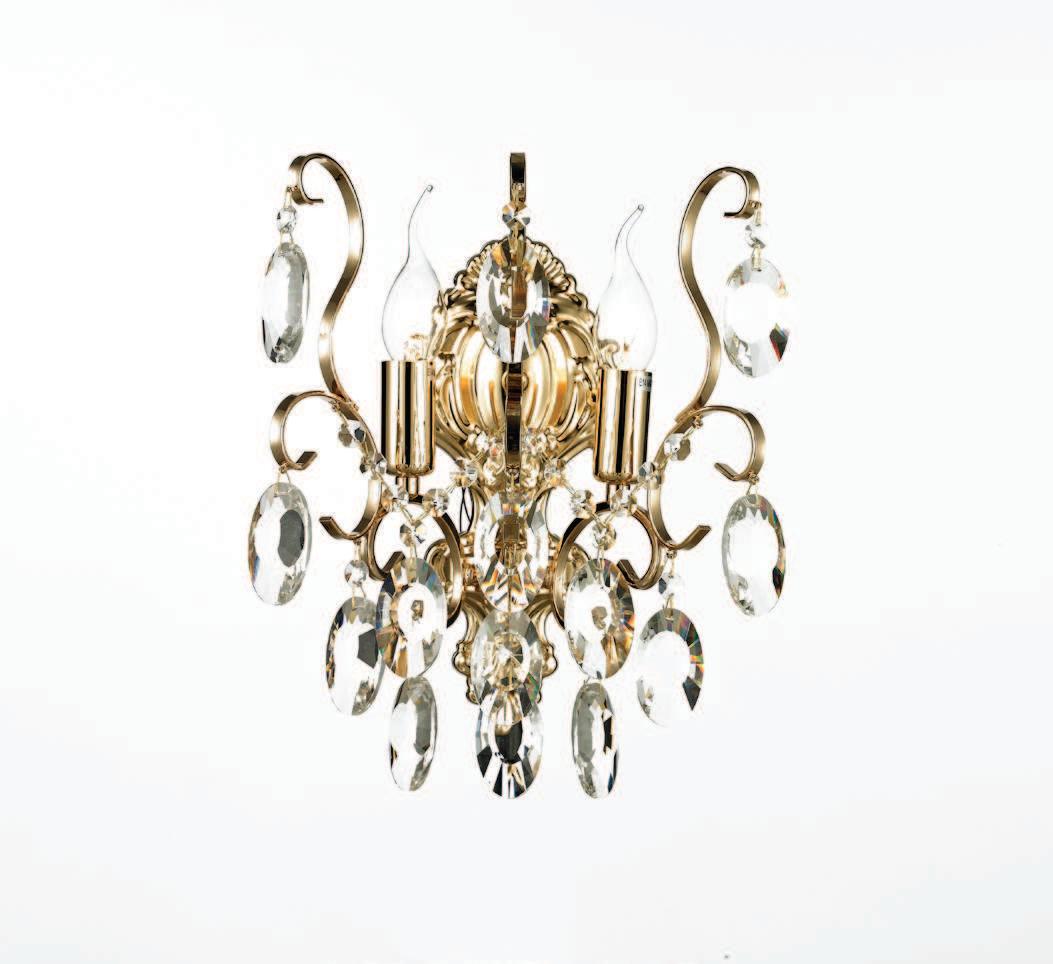 1| Arandela dourado em metal com cristais transparentes, da Teutoluz