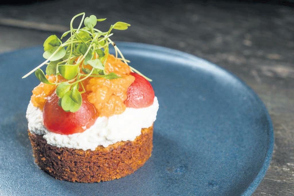Servido em porções menores, o prato reinventa o bolo pelado, com uma versão salgada da receita
