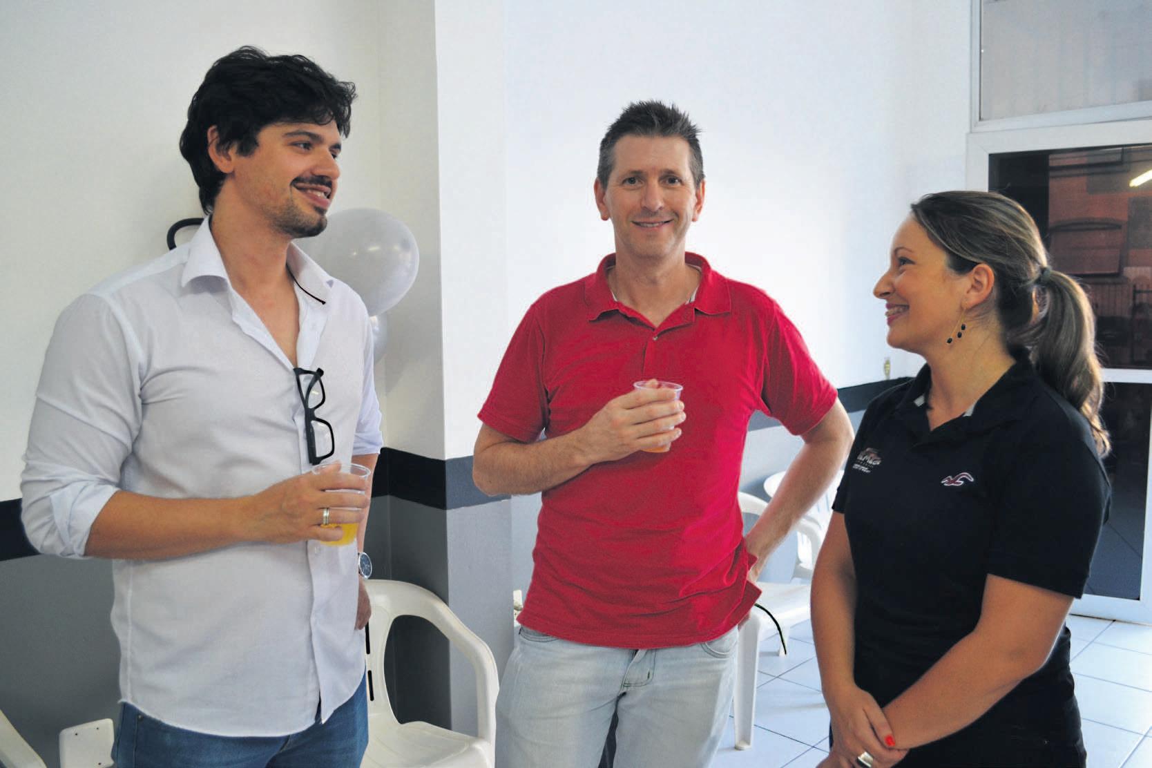 (foto 2). O trio Thales Scherer, Zélio Kunz Junior e Natália Corbellini se divertiu e aproveitou para colocar o papo em dia (foto 3, da esq. para a dir.).